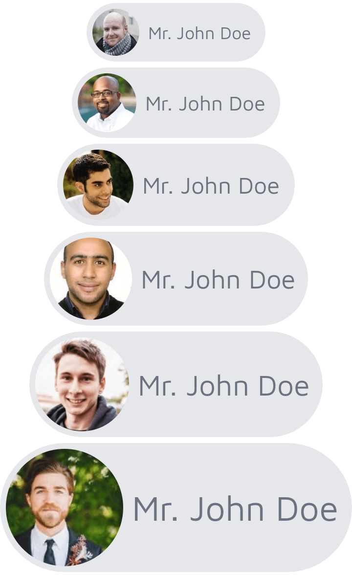 chip: Image with a name label next to it.circular: Standard round avatar.landscape: Rectangular, wider than tall.portrait: Rectangular, taller than wide.square: Simple square avatar.stacked: Designed to overlap slightly in a horizontal group.